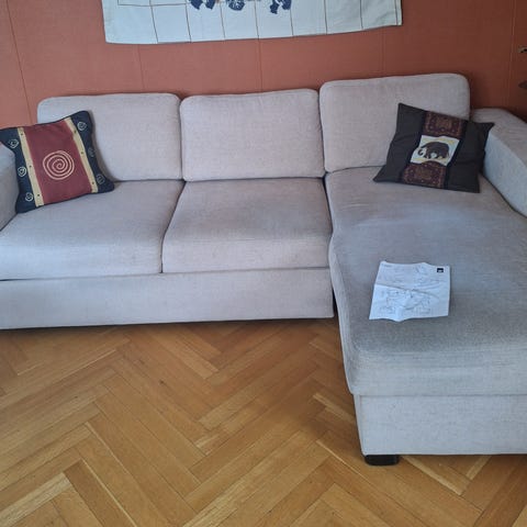 sovesofa gis bort grunnet flytting og fordi den ikke lenger har tilhørende madrass.