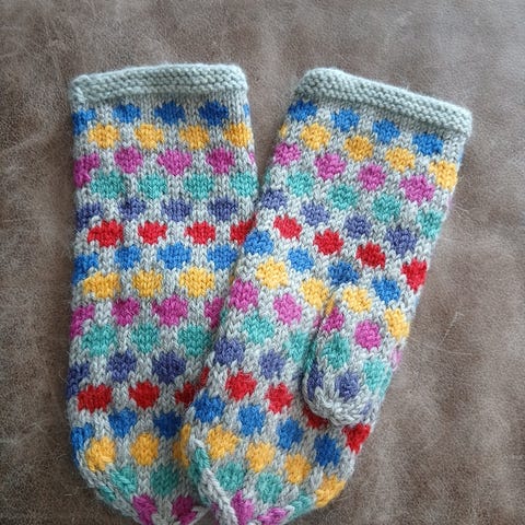 Strikket med fritidsgarn frå Sandnes Garn og tova i vaskemaskin på 40 grader.