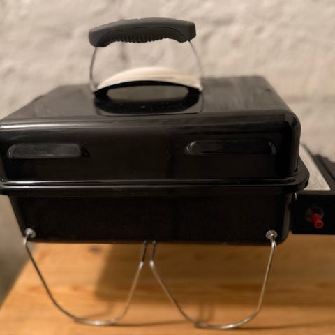 Helt ny og ubrukt Weber Go-Anywhere bærbar grill. Den har et kompakt design med sammenleggbare ben for enkel transport og oppbevaring. Grillen er laget av holdbare materialer og egnet for utendørs bruk, camping og piknik.