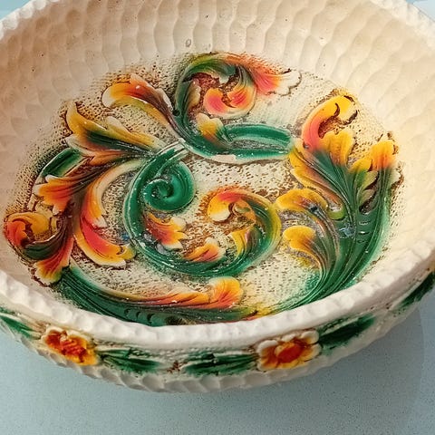 Bollen måler 16,5 cm i diameter og 7,5 cm høy.