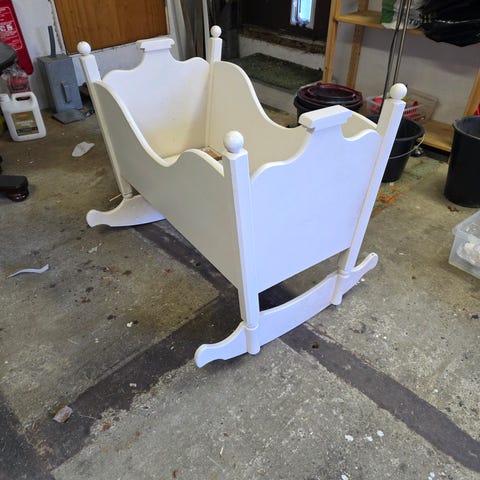 Innermål er 82 cm x 52cm. Bunn og madrass følger med