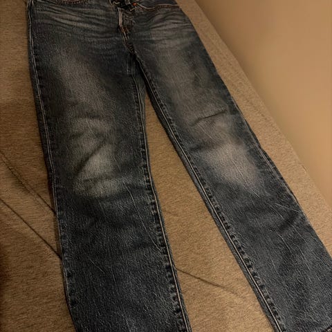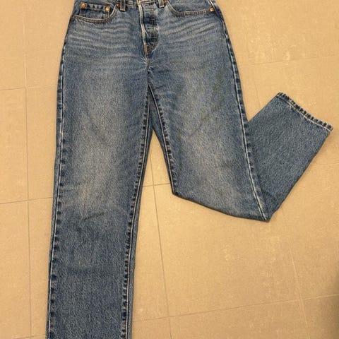 Levi's 501 Jeans i blå farge, størrelse W26 og S for kvinner. Laget av 100 % bomull. Klassisk design med fem lommer og knappelukking. Passer til hverdagsbruk og ulike anledninger. Stor i størrelsen.