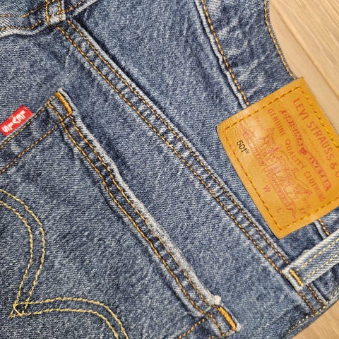 Levi's 501 slim i mørkgrå, w25, L28. Ikke brukt fordi den ikke passer. Stor i størrelsen, tilsvarer str 26.