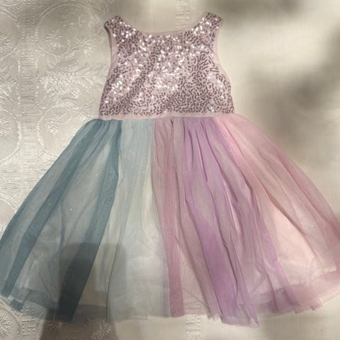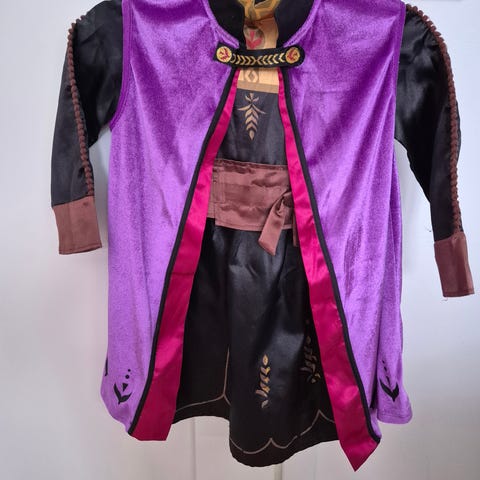 H&M Disney Frost kjole i blå farge, størrelse 104. Kjolen har lange ermer og er laget av lett materiale med dekorative detaljer. Passer til barn i alderen 3-4 år. Avtakbare skulderslør.
