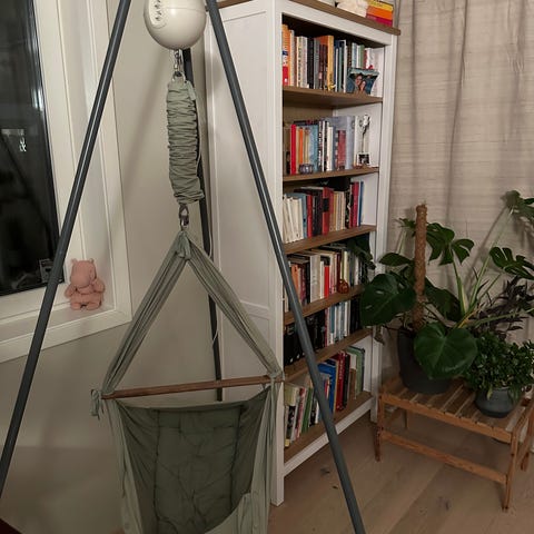Moonboon hengevugge selges, karabinkroken som er på bildet kan følge med hvis ønsket. Pent brukt i noen mnd av 1 barn.