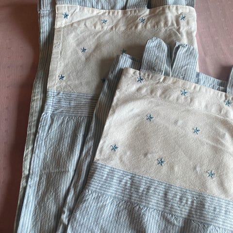 Pent brukt. 50% bomull/50% polyester. Henger fint.