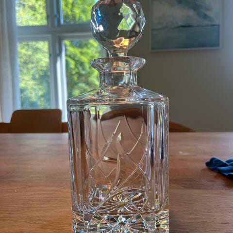 Helt ny i eske, Whiskeykaraffel med fire glass. Aldri åpnet eller brukt.