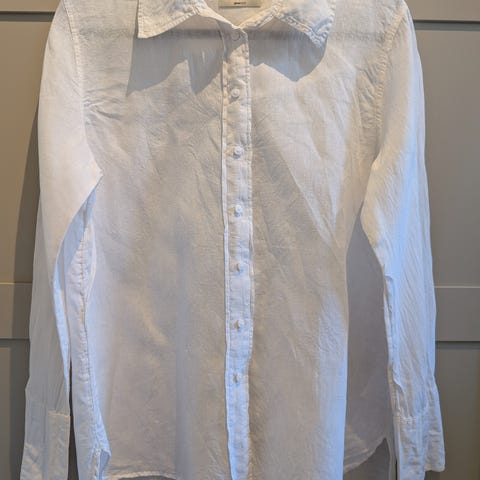 Co'couture bluse i blå denim med små hvite prikker. Blusen har puffede ermer og tre svarte sløyfer foran som lukkedetaljer. Størrelse M, kun brukt et par ganger. Kan brukes med sløyfene bak og foran, like fin begge veier, men utrykket endrer seg🌸