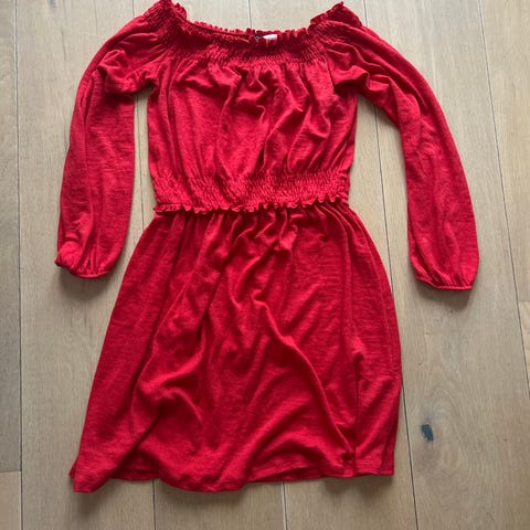 Nydelig rød kjole selges! Pent brukt. Tettsittende. Mykt fløyelsstoff. Lårkort. Selger unna en del klær👍