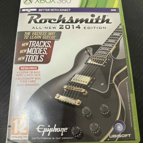 Ubisoft Rocksmith PC-spill inkludert USB-kabel. Spillet er kompatibelt med PC og krever tilkobling via USB for å bruke gitar eller bass som kontroller.