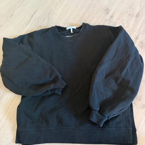 Nelly Genser i størrelse M for kvinner. Genseren er svart og laget av et vanlig stoffmateriale. Passer til daglig bruk og kan kombineres med ulike antrekk.