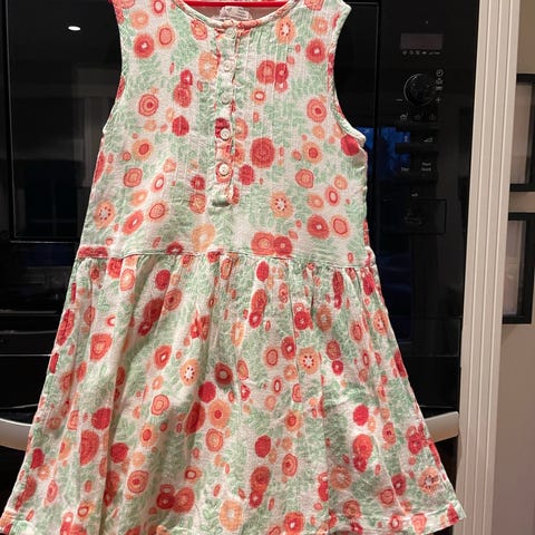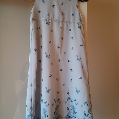 Veldig pent brukt sommerkjole, med underskjørt og knyting i livet. Økologisk bomull.