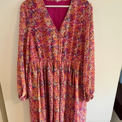 Nectar clothing. Rød rosa, svart mm blomstermønteret. Belte medfølger