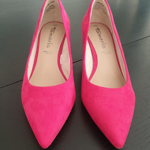 Stilige tamaris pumps i str 37. Liten skade på den ene hælen, ellers fremstår de som nye.