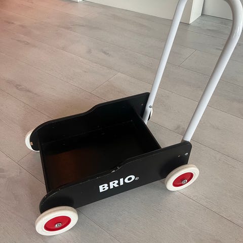 Selger en gåvogn fra Inovi, brukt av to barn. Denne typen skiller seg fra de andre på markedet fordi den ikke vipper slik at barnet faller så lett. De lange "beina" bakover holder vogna stabil under gåtrening. Den kan også bremses ved å skru på festene under slik at den ikke går så fort framover, noe som er helt supert når barnet er helt fersk på å bruke bena sine. Har et merke med avflasset maling (se bilde), ellers i god stand.