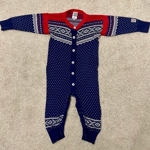 Pent brukt Mariusdress i bomull, størrelse 0-3 mnd. praktisk med knapping mellom bena for bleieskift.