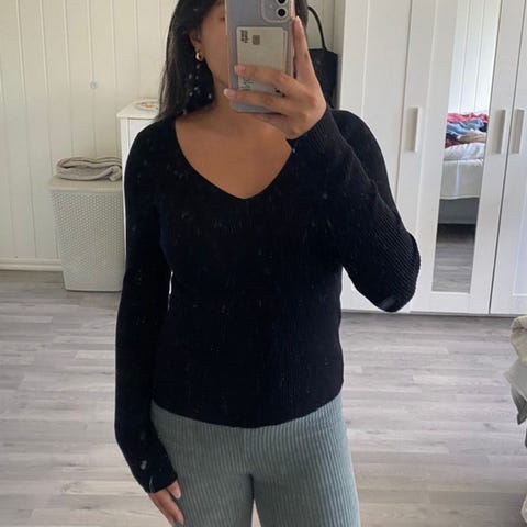 Fin party-genser med firkantet utringning og lange armer. Brukt noen få ganger