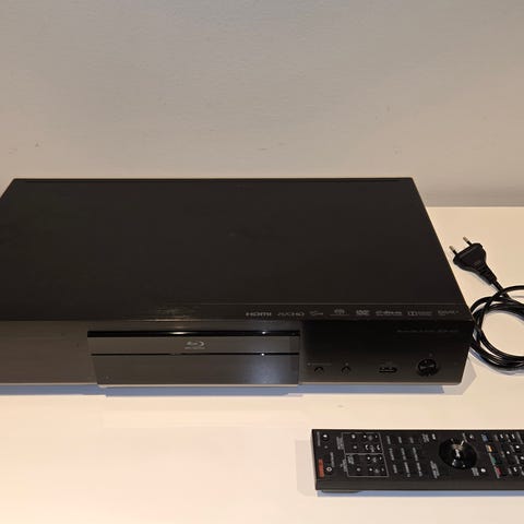 Pioneer BDP-150 Blu-ray Disc-spiller i svart farge. Enheten støtter Blu-ray-avspilling og har standard tilkoblinger for strøm og data. Designet for hjemmeunderholdning med fokus på avspilling av Blu-ray-plater.