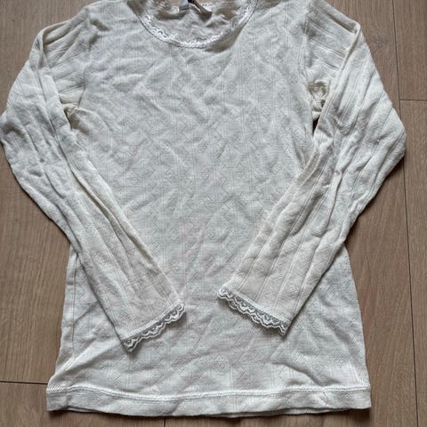 Joha ulltrøye for barn i størrelse 134, farge beige. Laget av 85% merinoull, 15% silke. Trøyen er designet for jenter og egner seg til bruk som undertøy eller mellomlag for å gi varme og komfort.