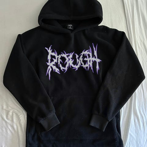 Kul hettejakke i rød og svart med kule logoer/ bilder. Brukt par ganger, men selger da den ikke blir brukt lengre. Str S, men stor i str (oversized)