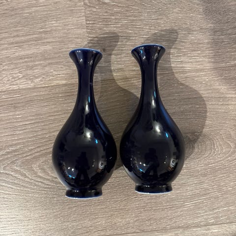 Samling med minivaser, 36 stk totalt. Alle er ca 10 cm høye og i klart glass, men ingen av dem er like. Kjempefine å pynte med i bryllup eller konfirmasjon, vi har brukt dem som bordkort. Selges kun samlet.