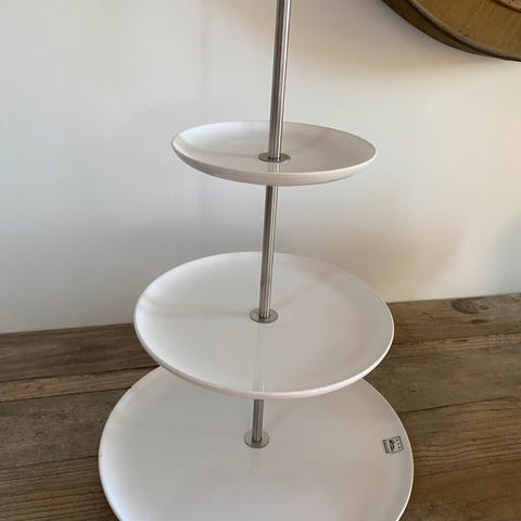 Den har et lite hakk, men er ellers i god stand. Perfekt som dekorativ skål eller til servering.