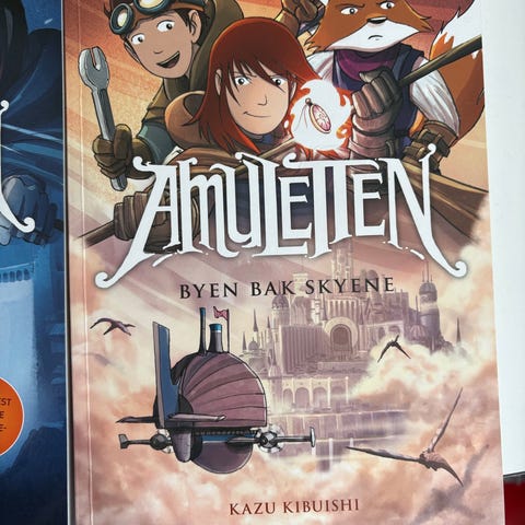 Amuletten bokserie av Kazu Kibuishi, grafiske romaner på norsk. Serien inkluderer flere bind med fantasy- og eventyrtema, egnet for ungdom og voksne lesere. Bøkene har fargerike illustrasjoner og følger en sammenhengende historie.