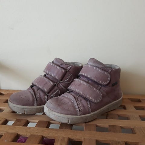 Superfit Gore-Tex superlett sko for barn, størrelse 24. Skoene er lilla med rosa detaljer og har borrelåslukking.