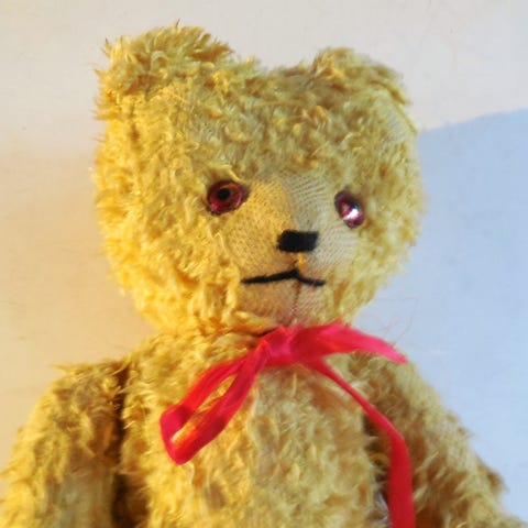 Gammel teddybjørn, bevegelig armer og ben. Ingen merkelapper.