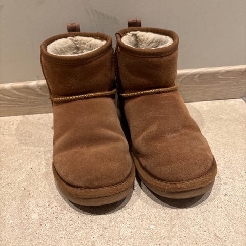 Vintersøvlett barn i størrelse 34, farge svart. med pelsdetaljer på innsiden og toppen av støvlene. Merke Zara. Gummisåle med mønster for bedre grep. Designet for jenter.