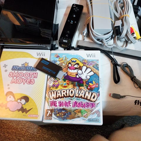 Det står også et 4gb sd kort i konsollen med noen Mario, Yoshi og Donkey kong spill. Men man trenger en classic controller for å spille disse. Denne må kjøpes separat.