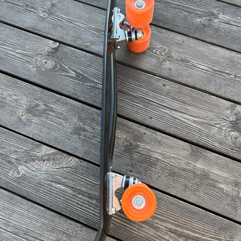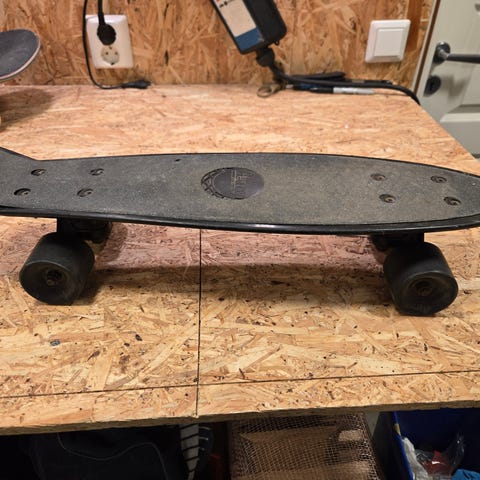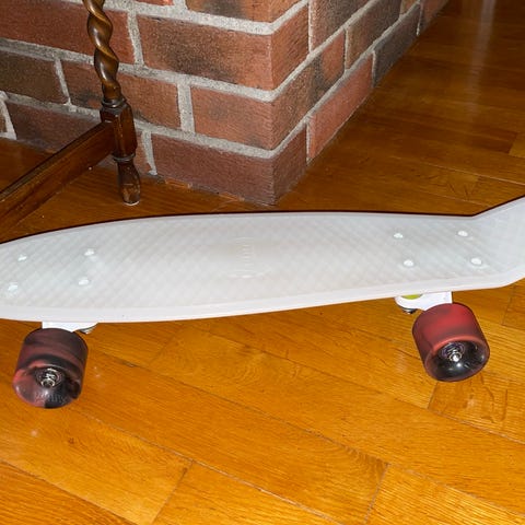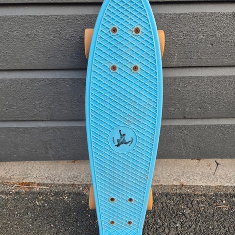 Nesten ikke brukt. Penny Skateboards Cruiser Skateboard i lilla plastmateriale med en lengde på 22 tommer. Utstyrt med rosa hjul og passer for både nybegynnere og erfarne brukere. Designet for bykjøring og enkel transport.