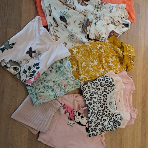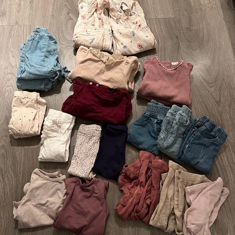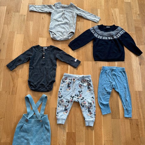 Tvillingmatch str 80 frå Lindex, med Mummi mønster😍 Eine buksa har litt meir slitt trykk på knea(sjå bilde) enn den andre buksa. Ellers er det fint brukt med mykje bruk igjen!
