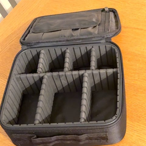 En liten mappe med smykker, ringer, neglfil, noe hårpynt og litt annet stæsj til en jente som liker glam og rosa.