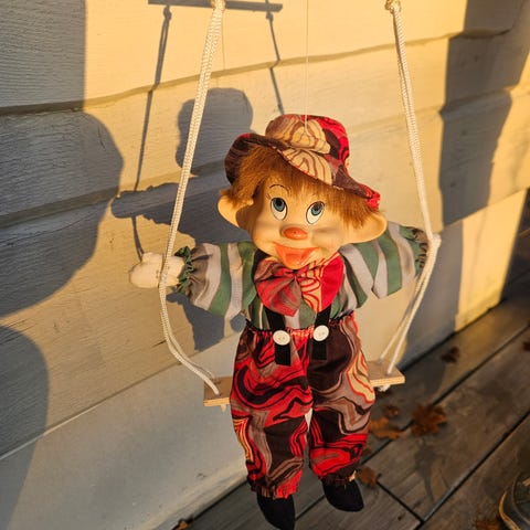 Fem størrelser som går inni hverandre. Ca 18cm høy. Lukter litt lakk. Ellers litt slitasje.
