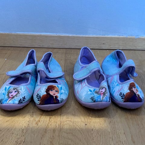H&M Disney Frozen ballerina sko for jenter i størrelse 32. Skoene er sølvfargede med glitterdetaljer og har elastisk stropp over vristen for bedre passform. Materialet er syntetisk. Skoene har et innvendig motiv fra Disney Frozen.