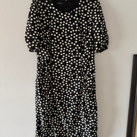 Rød kjole til festlige sammenkomster, størrelse M/40 fra Gerry Weber. Kjolens overdel er med blonder mens skjørtet er glatt. Behagelig å ha på. Ukjent materiale (fordi jeg har klippet bort lappen). Foret. Ca 109 cm lang, se bilder for andre mål.