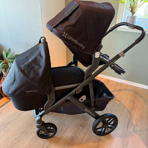 Baby Jogger City Select tvillingtrille i grå farge med aluminiumsramme. Trillen har to seter tilpasset for tvillinger eller søsken, med justerbare ryggstøtter og fempunkts seler for sikkerhet. Passer for barn i småbarnsalder. Fire hjul med god demping og sving. Veldig kjekk vogn. Trenger en vask.