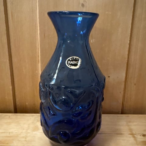 Selger denne nesten ubrukte Magnor vasen. Det er en Amadeus i koboltblå. Mål på den flotte blå vasen finner du på det siste bildet.