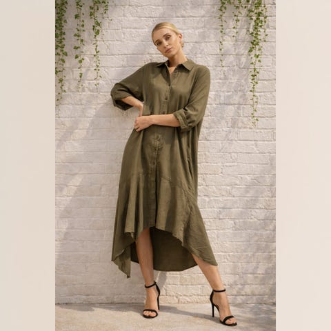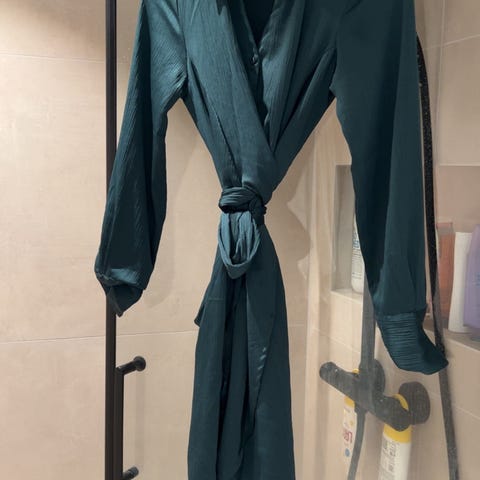Nydelig skjortekjole fra Moves i dus grønnfarge. Knyting i livet for god passform. Midi lengde.