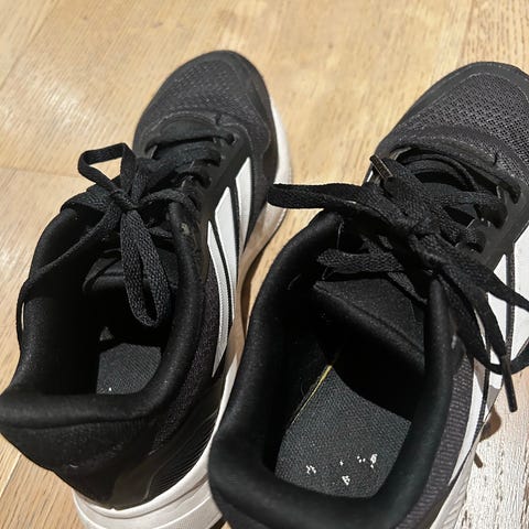 Omtrent ubrukte Adidas sorte jogge-/ fritidssko str. 43,5 selges. Brukt et par ganger til innegym av forrige eier.