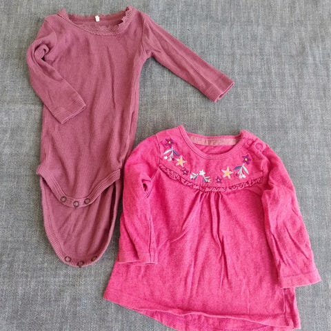 5 bodyer i størrelse 56 for gutt. Fargene inkluderer hvit og blå.