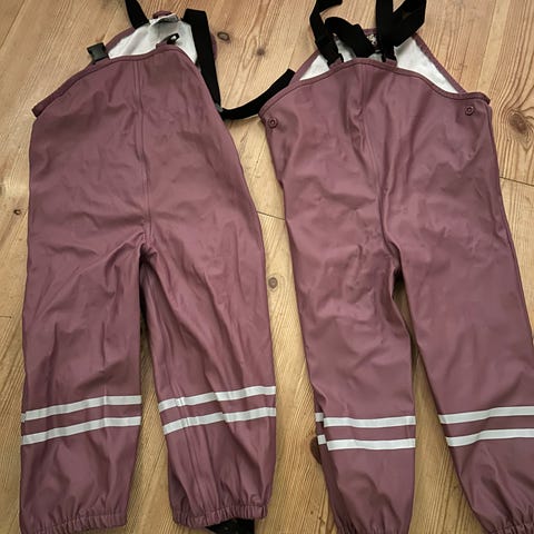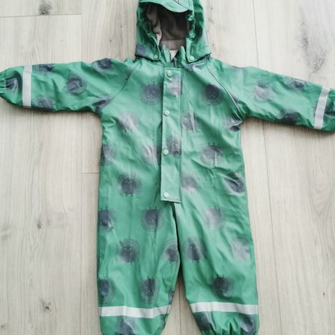 Regnklær til baby str 86 . Jeg har kjøpt den men brukt ikke. Så , det er helt ny . Inn siden fless og varm.