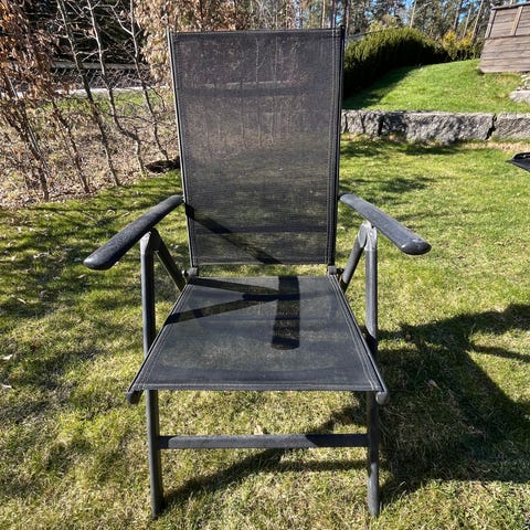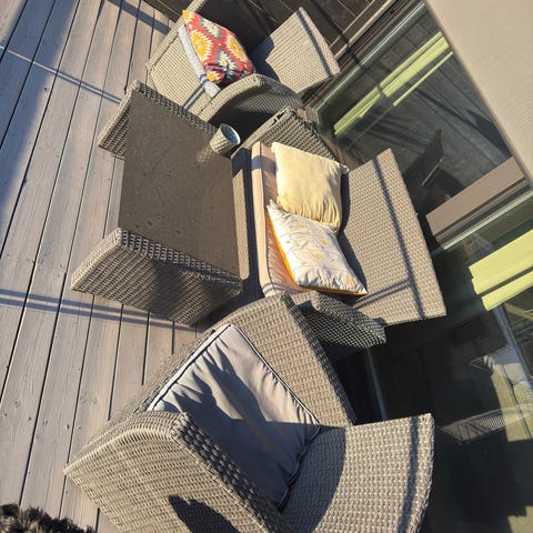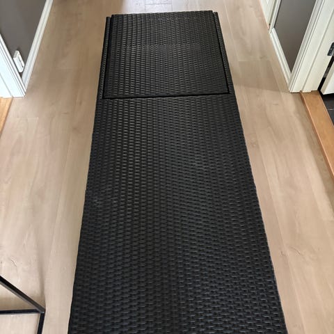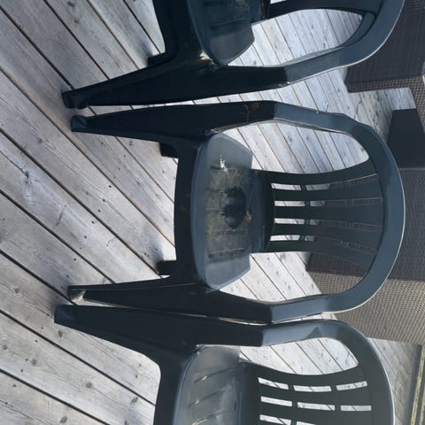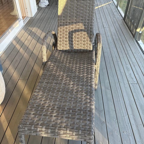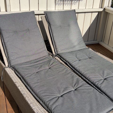 To solstoler i brun rotting gis bort. Ryggdelen kan settes i forskjellige nivåer. Rottingen er trasig på noen streder. Kan brukes til diy prosjekt eller fikses av en handy person. Hentes i Ski.