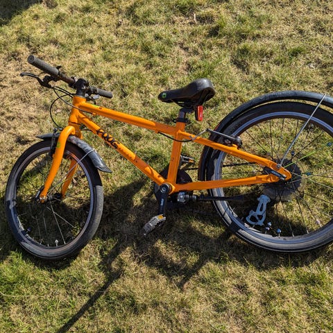 Selger en Frog 62 barnesykkel, oransje farge.