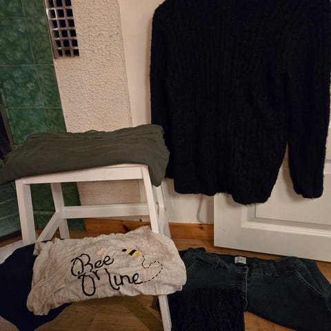 Klespakke til dame selges. Sko str 39. Klær i str M og L (vest i XL, men liten i str).