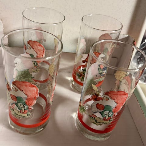 Selger en liten samling unike souvenirkrus og kopper fra ulike land og hoteller – alt fra klassiske tyske ølkrus til treskåret håndverk fra Litauen.