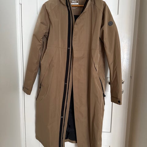 Ilse Jacobsen, raincoat/regnjakke. Foret lang regnjakke/kåpe/frakk/allværsjakke, str 40. En veldig fin jakke/frakk som kan brukes i mange settinger. I en nydelig mørk beige farge. Foret gjør at den også er en varm regnfrakk.
