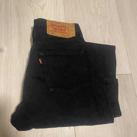 Pent brukt svarte jeans for herre fra Levi’s, modellen heter 505. Størrelse W33 L32