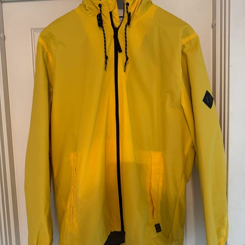 H&M Jakke i størrelse XL for herre. Jakken er blå og har en enkel design med glidelås foran og knapp på mansjettene. Materialet og ytterligere spesifikasjoner er ikke oppgitt. Passer til utendørs bruk.
